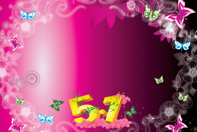 紫色花藤蝴蝶背景的五一劳动节PPT背景图片 劳动节PPT模板 2013-01-10