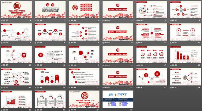 幻灯片模板使用了红色作为主题色,与中国工商银行的标志完美融合;