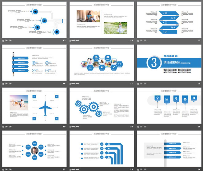 关键词:蓝色扁平化简约PowerPoint模板免费下载,动态年终工作总结幻灯片模板,.PPTX格式;