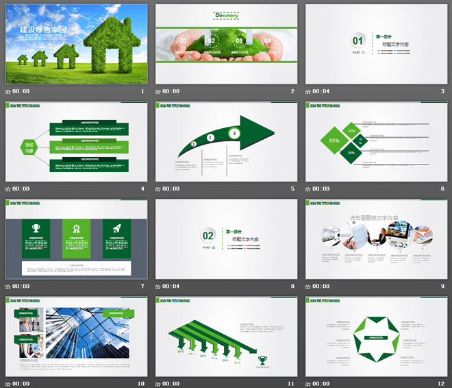 建设绿色家园主题低碳环保PPT模板 环保PPT模板 2018-01-02