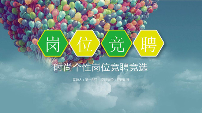 这是一套天空中的彩色气球背景的,清新个人岗位竞聘PPT模板。game36528365365模板网提供精美岗位竞聘幻灯片模板免费下载;