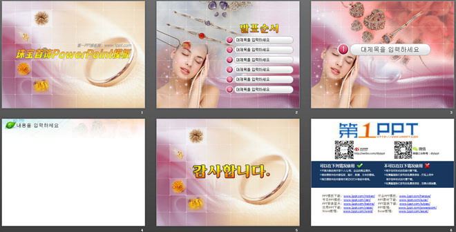 淡雅粉色背景的,韩国首饰珠宝幻灯片模板免费下载;