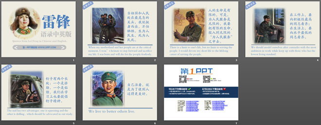 雷锋语录中英文版幻灯片,Quotes from Lei Feng in Chinese and English.PowerPoint;