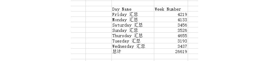 单击“确定”后的效果如下。在Excel2003时代,分类汇总还是一个相当牛X的高效功能。你做出来肯定和牛闪闪的不一样。记住:做分类汇总之前分类字段一定要做排序操作。仔细看上图,Day Name的星期都是排序排在一起的。