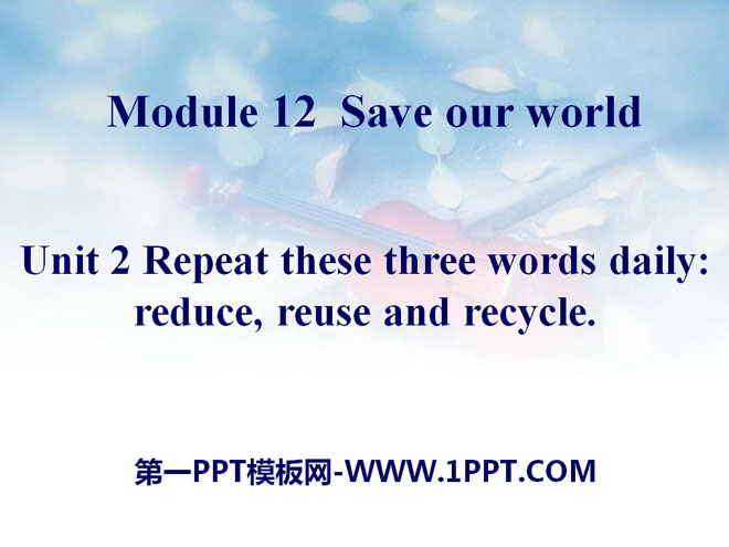 关键词:《Repeat these three words daily:reduce, reuse and recycle》教学课件,外研版九年级上册英语课件,九年级英语幻灯片课件下载,《Repeat these three words daily:reduce, reuse and recycle》PPT课件下载,.ppt格式