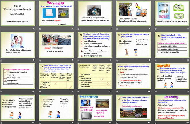 关键词:《We're trying to save the earth!》教学课件,人教新目标版九年级全一册英语PPT课件下载,九年级英语幻灯片课件下载,《We're trying to save the earth!》PPT课件下载,.PPT格式;