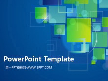 蓝色背景绿色方块叠加的科技感幻灯片模板