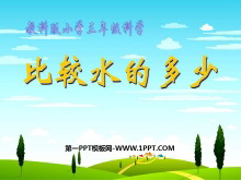 《比较水的多少》水和空气PPT课件6 只有一瓶水,怎么分呢? 比较两瓶水的多少 我们的结论:____号瓶比____号瓶的水多。 活动要求: 小组合作,向量筒里倒入50ml的水。 ... ... ... 医生告诉我们:人每天喝水的量不能少于1500ml..