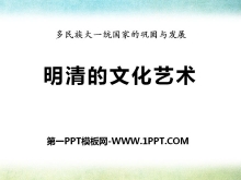 《明清的文化艺术》多民族大一统国家的巩固与发展PPT课件 学习目标 了解明清古典小说的成就;明清戏剧的繁荣、书法绘画成就。 重点:《三国演义》《水浒传》《西游记》和《红楼梦》四大古典文学名著的文学成就和时代特点。 温..