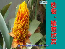 《动物、植物欣赏》PPT课件 同学们,今天我们将在一起上一节动物、植物为内容的欣赏课,在这节课上,小朋友们一定要认真地看,仔细地听,因为有许多问题等着我们来回答。 我们将要去的第一站是欣赏植物花卉。美丽的花儿离不开..