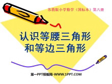 《认识等腰三角形和等边三角形》三角形平行四边形和梯形PPT课件 教学目标 1.让学生在实际操作中认识等腰三角形和等边三角形以及它们的特征,知道等腰三角形各部分名称,能正确判断一个三角形是否是等腰三角形或等边三角形。 2...