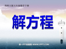 《解方程》方程PPT课件2 写出等式 。 20加上x等于30 8a等于2b减去21 20+x=30 8a=2b-21 12的3倍等于36 3y减去8等于13 123=36 3y -8=13 这些等式,哪几个是方程?谁能够很快说出方程的解? ... ... ... 4只考拉的质量=12kg。 ..