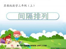 《间隔排列》解决问题的策略PPT课件3 像上面那样一个物体隔着一个物体排列,我们就把这种排列叫做一一间隔排列 说一说: 同学们,兔子乐园很漂亮吧?你能在图中找到一一间隔排列的两种物体吗? 把一个夹子和一块手帕看成一组,..