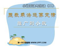 《整数乘法运算律推广到小数》小数乘法和除法PPT课件 教学目标 1.知识目标:能够熟练的将整数运算定律运用到小数,能够对小数进行简便计算。 2.能力目标:树立大家的迁移意识,能够做到举一反三,活学活用。 3.情感目标:培养..