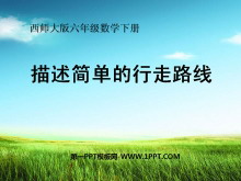 《描述简单的行走路线》图形的变换和确定位置PPT课件2 教学目标 1.学会根据平面图运用所学的确定位置的知识和方法描述简单的行走路线。 2.在学习过程中进一步增强观察能力、识图能力和语言表达能力,发展空间观念。 3.进一..