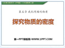 《探究物质的密度》我们周围的物质PPT课件 教学目标 一、理解密度的定义、公式和单位。 二、会进行密度单位的换算。 三、通过实验、测量、计算、分析和比较,发现同种物质质量与体积的比值是相同的,不同物质质量与体积的比值..