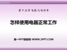 《怎样使用电器正常工作》电能与电功率PPT课件 【学习目标】 1.知道电器铭牌上标出的一些参数的意义,知道用电器的额定功率与实际功率. 2.测量小灯泡的电功率.能用电功率公式计算额定功率和实际功率. 3.学会用伏安法设计并进行..