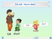 《I'm tall》Flash动画课件6 本课件属于人教精通版四年级上册英语unit6《I'm tall》的教学素材Flash动画课件,内容生动形象,敬请下载! 关键词:《I'm tall》教学课件,人教精通版四年级上册英语Flash动画课件下载,四年级英..