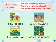 《We're watching the games》Flash动画课件3 本课件属于人教精通版五年级下册英语unit6《We're watching the games》的教学素材Flash动画课件,内容生动形象,敬请下载! 关键词:《We're watching the games》教学课件,人教..
