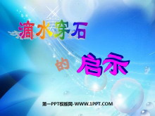 《滴水穿石的启示》PPT课件3水滴的力量是微不足道的,可是它目标专一,持之以恒,所以能把石块滴穿。雨水虽然( ),( ),但是因为它没有( ),也没有( ),所以( )。 你看,古今中外所有..