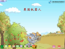 《果园机器人》Flash动画课件 秋天到了,果农们又高兴又发愁。高兴的是水果又丰收啦,发愁的是需要做的事太多了。要把果子从树上摘下来,要把它们运到很远的地方去卖,实在忙不过来。 你会想,可以让机器人来帮忙呀。是的,现..