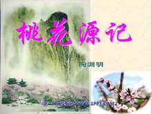 《桃花源记》PPT课件6 作者简介: 陶渊明:(公元365427年),名潜,字元亮,东晋伟大诗人。生于东晋末朝,出身于没落的地主官僚家庭。他少时颇有壮志,博学能文,任性不羁。当时社会动乱不安,他有志不得展。做过小官,由于不满..