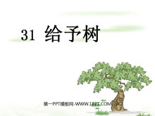 《给予树》PPT课件2 我会读 给予 试探 心意 祝福 甜蜜 担心 宽容 前夕 提醒 兴高采烈 暗示 猜测 立即 卡片 盼望 显然 拥抱 仁爱 同情 体贴 真挚 宽裕 圣诞节 援助 分享 闲逛 沉默不语 如愿以偿 自学要求 1、把课文读正确,读通..