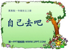 《自己去吧》PPT课件7 1.脚像小扇子,嘴像小铲子,下水捉虾子,不湿花褂子。 2.飞得高,飞得低,扑到地上捉小鸡。 自己去吧 小鸭说:妈妈,您带我去游泳好吗?妈妈说:小溪的水不深,自己去游吧。过了几天,小鸭学会了游泳。 ..